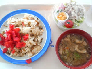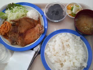 お昼は、ちょうどタイミングよくすいてたので、チキン照り焼きセットにクラゲちゃんの刺身。