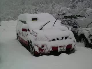 昼間は結局はたいした降りではなかったけど、朝までに100センチの積雪だとか。