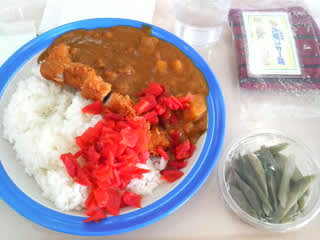 からあげ、豚汁、野菜たっぷりのおから、油味噌おにぎり。