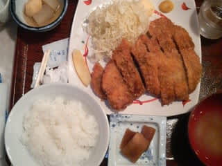 夜は舘岩「おあしす」にて、「ダブルロースカツ定食」。