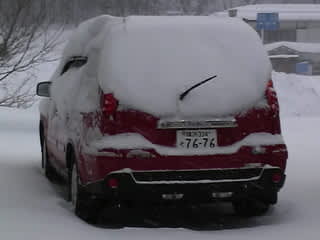 夜はたいした積雪はなかったらしく(あるいは風が強かったのか)、クルマの雪も手ではらえる程度。