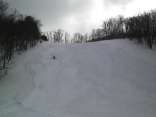 滑ると顔にかかるようなパウダーではないけど、重くはない新雪。