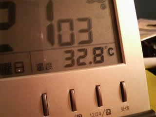 Weblog32.8℃ 2011年7月14日2025年9月23日 - Leave a Comment 帰ってきたら、こんな感じ(^_^;)。 きょうは天気良かったかと思うけどそれほどでもないのは、ベランダに張ったすだれが効いてるのかな? 西日ばっかり気にして、南側はまだノーケアなんだけど(~_~;)。 まー、こりで窓2面と扉を全開、シーリングファンを下向きに回したら、お風呂入ってる間にけっこう下がった(^.^)。 まだ、更なる策も残してあるけどね(^^ゞ。
