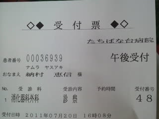 受付番号48番、診察中が39番だったけど、次がぼくの番だった(^^ゞ。