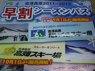・2011-2012 早割シーズンパス券 (2011-8-26)(会津高原高畑スキー場)