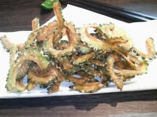 以前に大将がつぶやいてたゴーヤチップスって、そのときのおすすめボードものだったみたいでレギュラーメニューには無かったけど、作ってくれた。