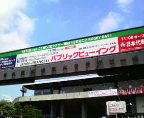 神宮へ向かうと、隣の秩父宮でパブリックビューイングをやるとのことだった。