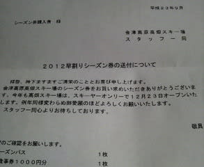 ・2011-2012シーズンパンフレット&シーズン券到着@会津高原高畑スキー場