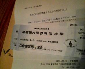 ついでに、早稲田戦もC自由席が2枚あるので、もう1枚の引き取り先を募集中。