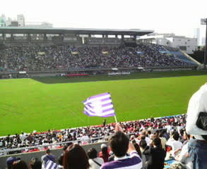 でも、きょうはひとりだから久しぶりにバックスタンド最上段に陣取った。