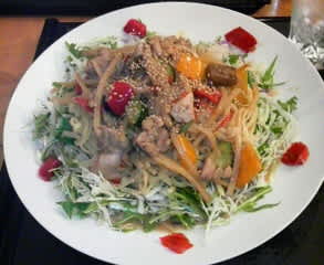 しっかり麺類ではあるけれど、メンより広く野菜が敷かれていてニクも載ってる。