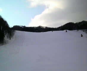 昨夜降らずに冷えきってたのを心配したけど、コースはカチカチになってないのはパウダーだから?