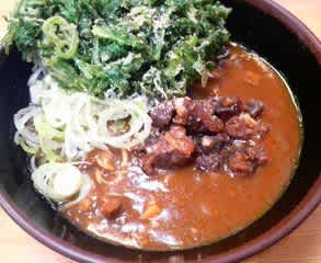 お食事ぼっかけカレーそば、春菊天 2012年1月25日2025年9月23日 - 2 Comments. 今朝は歩いても良かったんだけど、ちょうど20分に1本のバスに乗れる時間だったので十日市場駅「あじさい茶屋」。 やっぱりカレーに揚げ物は合うと思う。 むしろそばが微妙かな(~_~;)。 春菊天でそば食べてたら、もともとのカレーの具が残っちゃったよ(^_^;)。