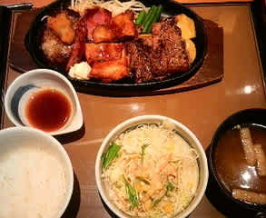 お食事ステーキミックス定食 2012年3月21日2025年9月23日 - Leave a Comment 春のステーキフェアで100円引きキャンペーン@青葉台「やよい軒」。 ハンバーグ、ベーコン、チキン南蛮、ビーフステーキ、かな? (^_^;) 4月一週目までみたいだけど、次に青葉台来るときには終わってるな(^^;。 いつものようにごはん少なめで頼んだけど、きょうはかなり少なめ(~_~;)。 でも、おかわり自由なんだから、そりで良いよ(^.^)。
