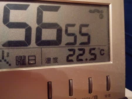 Weblog22℃ 2012年5月8日2025年9月23日 - Leave a Comment 帰宅時よりは2℃ほど下がったとはいえ、この時間帯にこの室温(-_-;)。 この間まで半纏着こんだまま布団に潜っていたんだけどなぁ。 (^_^;)