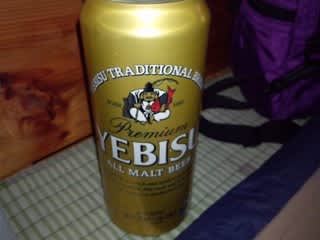 山小屋を堪能しようと缶ビール買いに行ったら、エビスが同じ値段だったので得した気分(^^)。