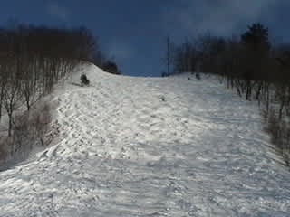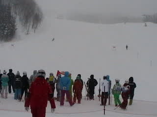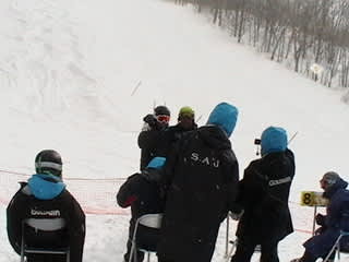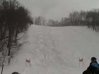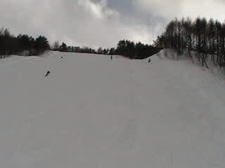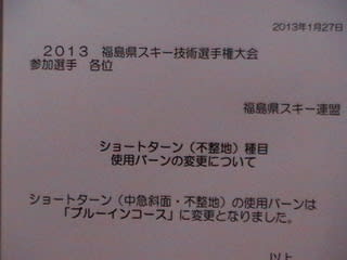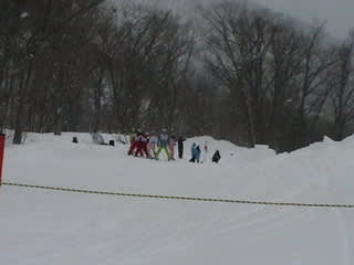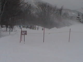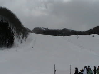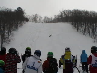 宿のご主人が「技術選が猪谷じゃ易しいなぁ」と言ってたのが聞こえた訳じゃないだろけど、きょうはブルーインでの競技らしい。