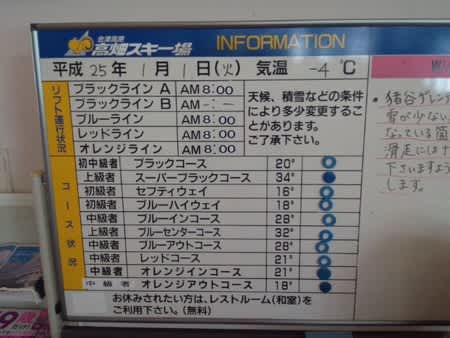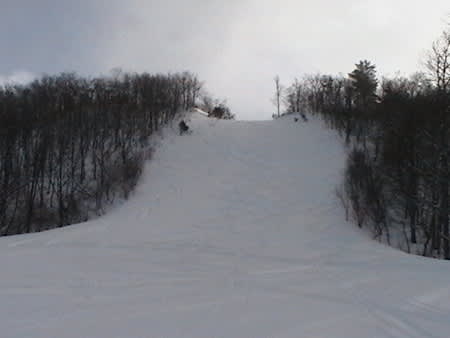 まずはレッドを滑ったのだけど、雪がいいうちにといったん猪谷を下りてみた。