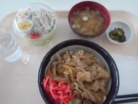 お昼は豚しょうが焼き丼とゴボウサラダ。