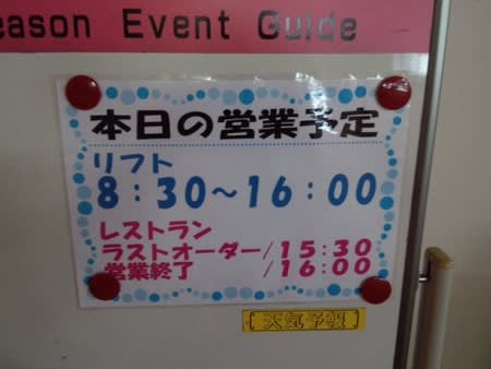 なんか、8時過ぎてもアナウンスもなくリフト動かないな~、等と思っていたら、きょうは平日だったのね。