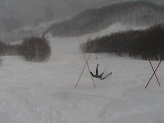 ひざ下パウダーながら下が固くてスピード出ちゃって、1本目は2回、2本目も1回だけ転んだ。
