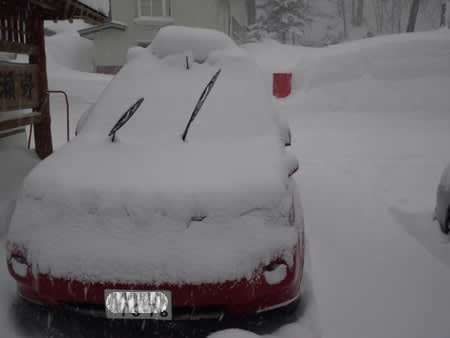 荷物を載せる前に自分でも雪下ろしして、出掛ける頃にはまた同じぐらい積もっちゃってたものな。