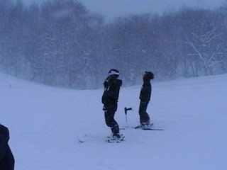 2本目で、右足の板がはずれちゃって(転んで外れたのではないもん)、新雪の中に紛失。