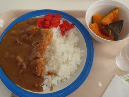 レストラン、ちょい混んでたのでカツカレー。で、かぼちゃをプラス。