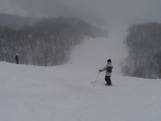 途中はそんなに降ってた感じは無かったけど、滑り出したら降りだした。