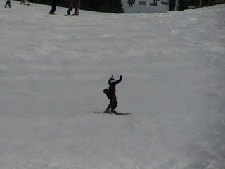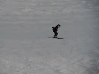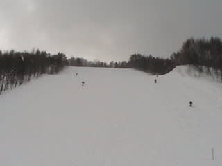 ぼくは隊長殿と同じく外側のラインを行ったのだけど、ピポットもいったん板が下を向いたところで止めるようにしてみた。