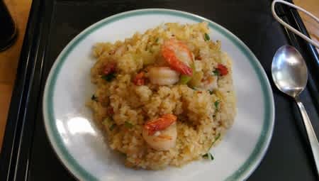 お昼は、在庫が余ったら出るだろうとウワサされていた平日限定のエビフライが、ひっそりと、単品で、150円で!