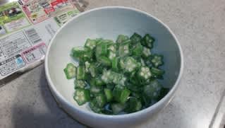 きざみオクラを好きなだけ器に移し、電子レンジで解凍します。