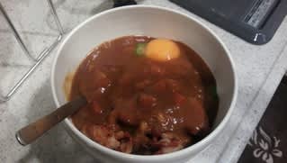 きょうはチキンと生たまごにオリーブオイルをかけました。