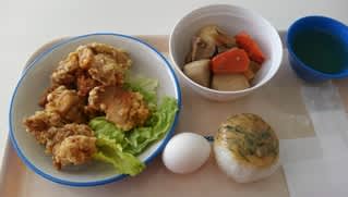 付け合せは鶏から揚げ単品と味噌おにぎり、ゆでたまご@会津高原高畑スキー場・センターハウスレストラン。