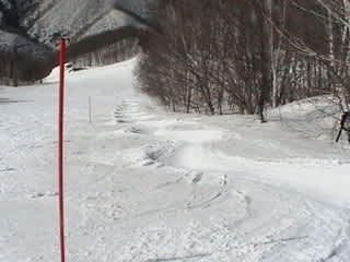 キャンプ用のコースがブラックに作られていたので、いったん猪谷を降りた。