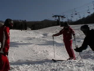 さっそく某A級検定員とリフトに乗ったんだけど、道具の話とかしちゃって、足が揃わないとか言っとくの忘れちゃった。