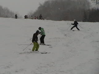 きょうは気温が高くてすぐに雪が荒れちゃったけど、それまでの何本かは楽しんでもらえたみたい。