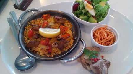 荒天のため、魚介ではなくステーキパエリアになってるところが素敵(^-^)ゝ゛。