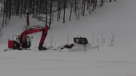 まずはポジション確認を兼ねて、レッドコースのコブ作りを手伝う。