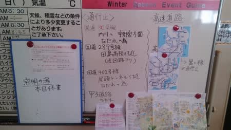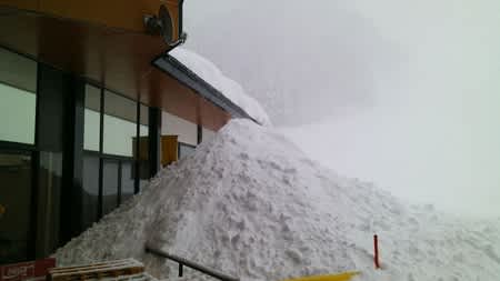 いや、スキー場はたいした雪ではないのだけど、下界からの道は雪崩で通行止めなところが何ヵ所もあるらしいからかな。