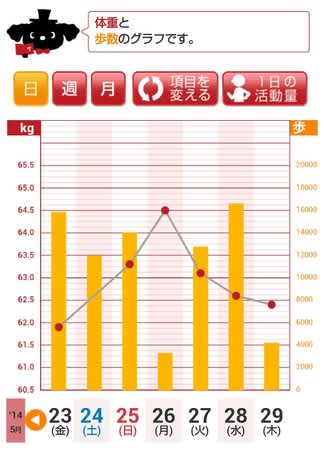 月曜日は、軽く食事したところでさらにいただいた菓子パン2個が1食分のカロリーあったけど、それにしても増え過ぎ、噴火したみたいだ(^o^;)。
