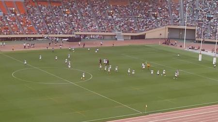 試合開始4分で、早稲田がゴール前から右に展開してトライ。