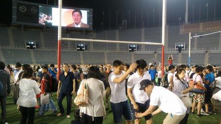 ラグビーイベントにしてはなんか混んでるなと思ったら、前座で陸上とかサッカーとかめもあったらしい(^_^;)。