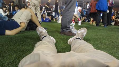 芝の上に横になったり。