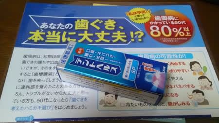 消化器科のクスリを受け取った薬局では、試供品の歯磨き粉をいただいた。