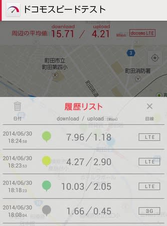 長津田はそこそこ速度出てたとか、町田よりも鴨居の方が遅いとか、使用感とは違う結果だった。