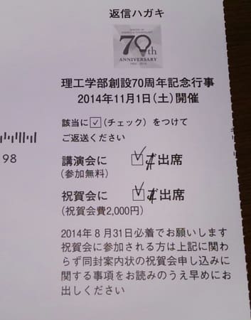 レジャー記念行事 2014年7月7日2025年9月23日 - Leave a Comment さっそく返信。 祝賀会も。 だれとも連絡とってないけど、まあ先生方はいらっしゃるだろうから(^.^)。 そんなわけで、11月1日は予約済み(^-^)/。