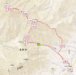 12時43分、登山口入口(D)。