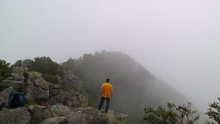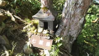 でっかい岩の鎖場とかも通って登りきったところに避難小屋のある「一不動」(1)には6時50分に到着。