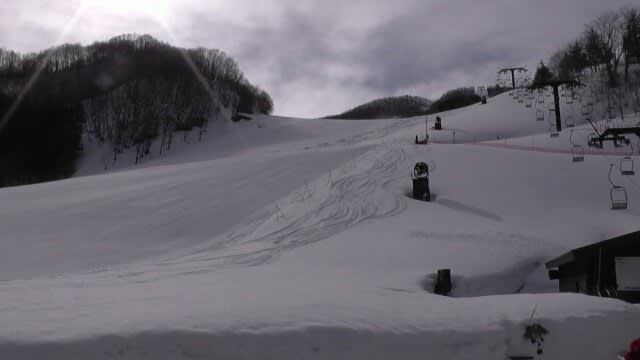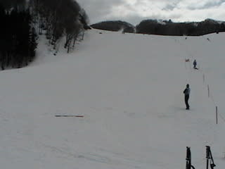 誰も滑ってないコースは、表層だけしゃばしゃばした雪だった。